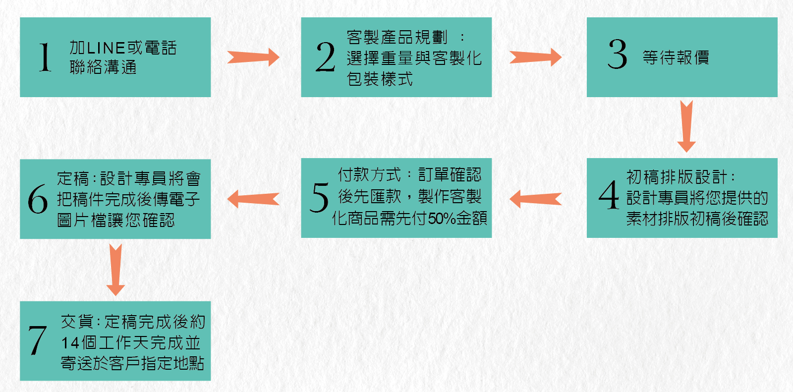 定稿完成後約14個工作天完成並寄送於客戶指定地點。